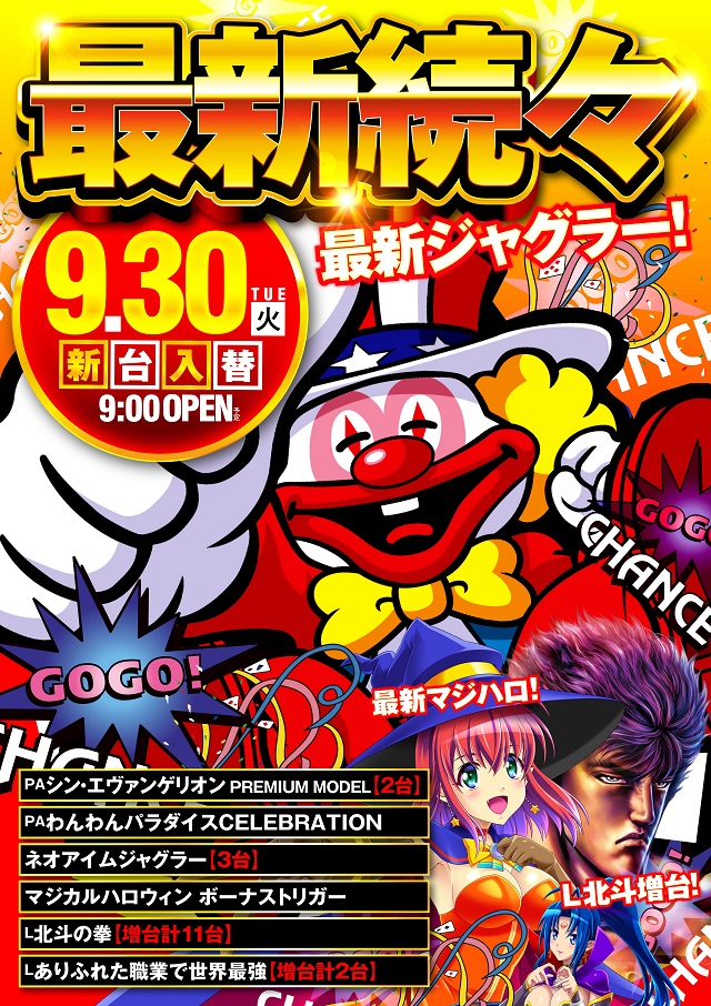 10月突入!名宝岡崎店の最新台で楽しもう!午前9時開店です♪