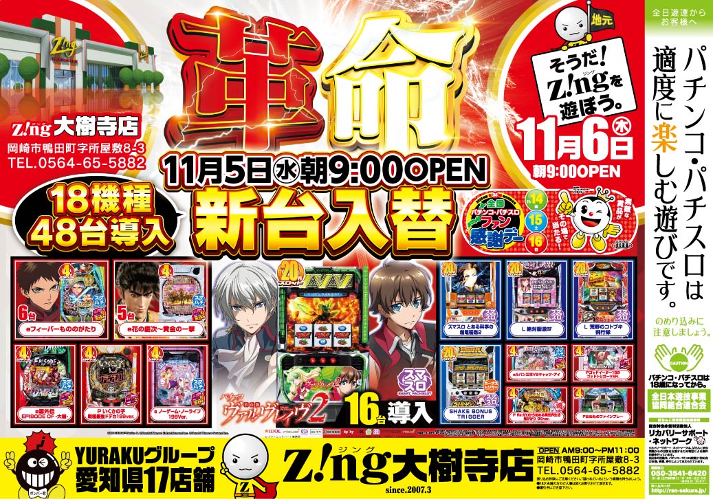 9:00 ~ 23:00(遊技終了時間22時50分) |