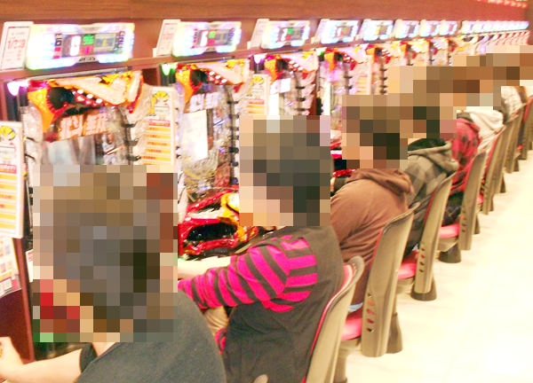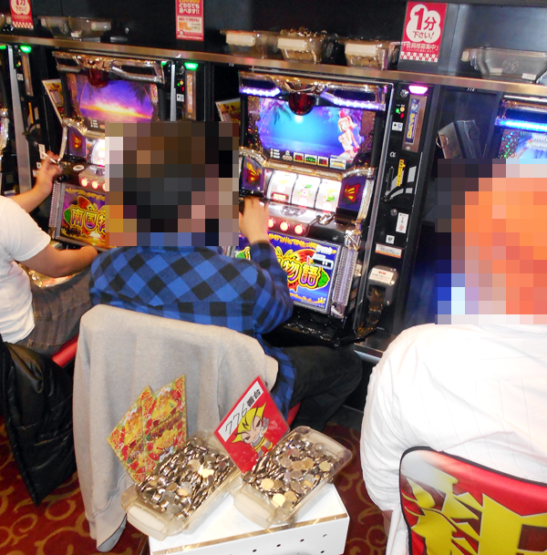 取材日は悪天候であったにもかかわらず、開店前から60名以上のプレイヤーが集まっており、開店直後はパチスロの「バジリスク〜甲賀忍法帖〜絆」などが満席となっていた。
