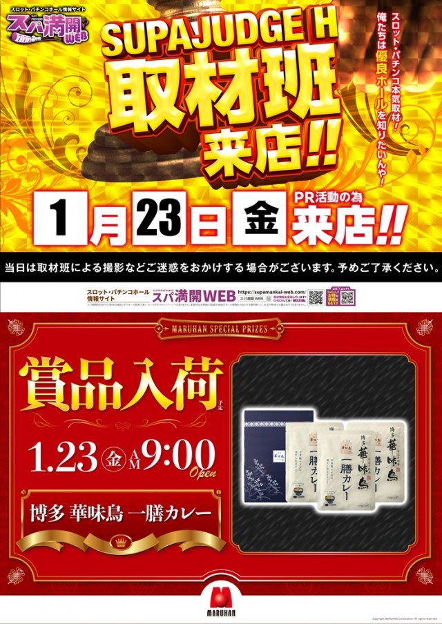 1月23日(金)【スパジャッジH取材班来店】あさ9時開店!