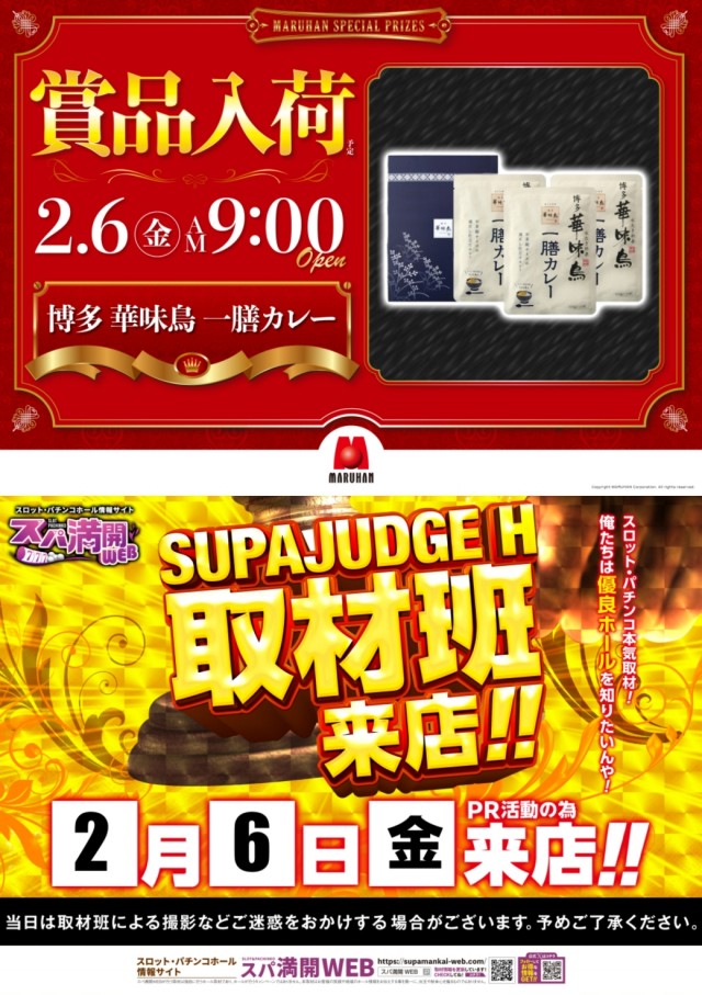 2月6日(金)【スパジャッジH&賞品入荷】朝9時開店!!