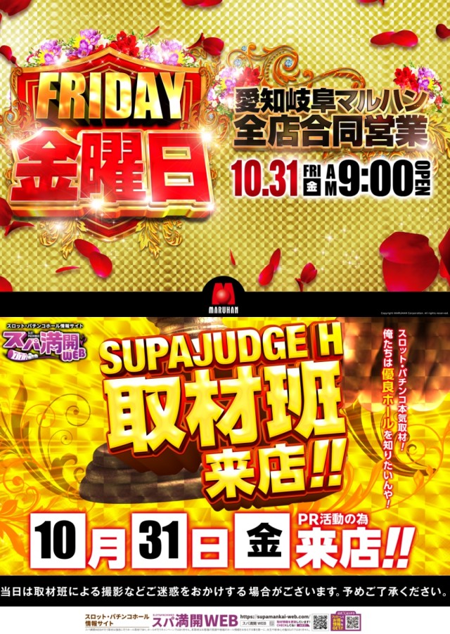 10月31日(金)【スパジャッジH取材班来店】あさ9時開店!