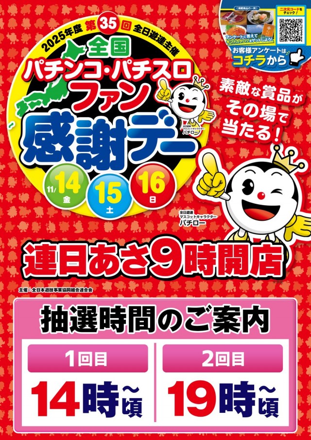 11月16日(日)【ファン感謝デー】あさ9時開店!!