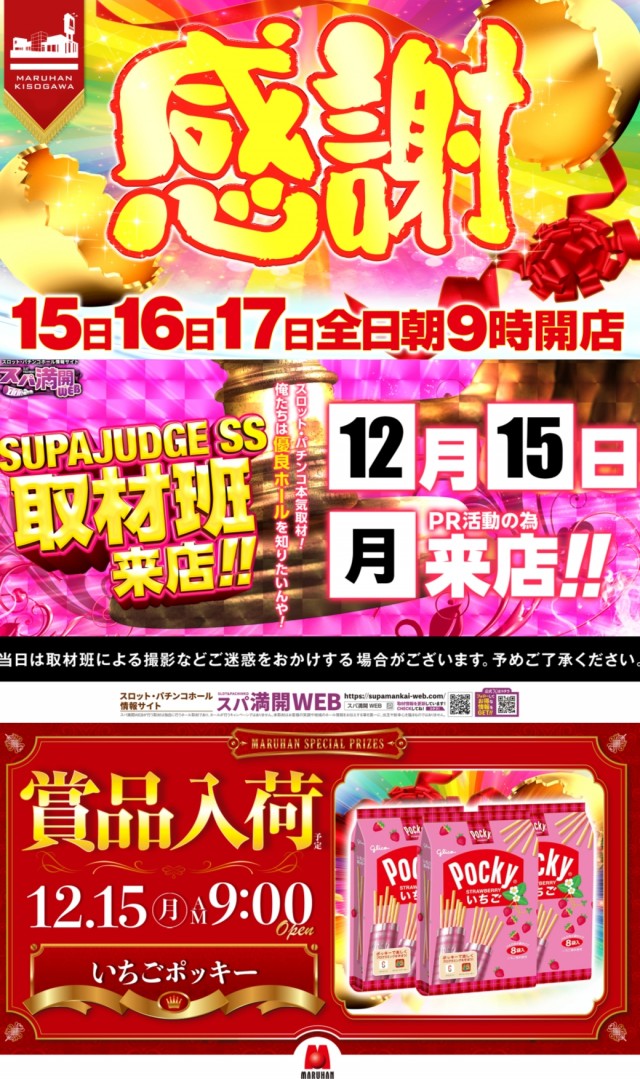 12月15日(月)【スパジャッジ取材班来店】朝9時開店!!