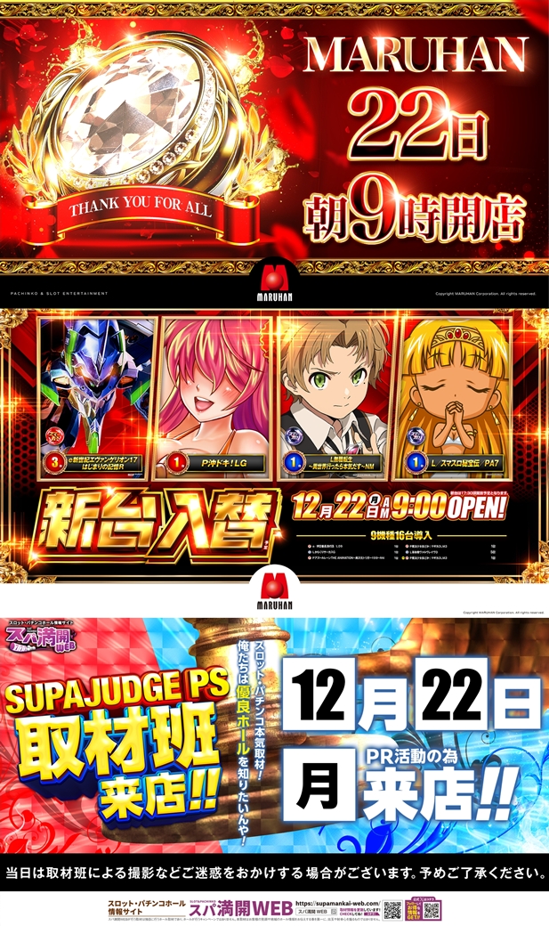 12月22日(月)【新台入替予定】あさ9時開店!!