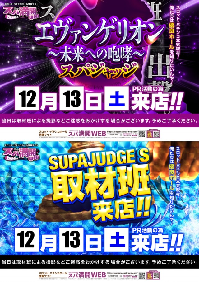 12月13日(土)【スパジャッジ取材班来店】朝9時開店!!