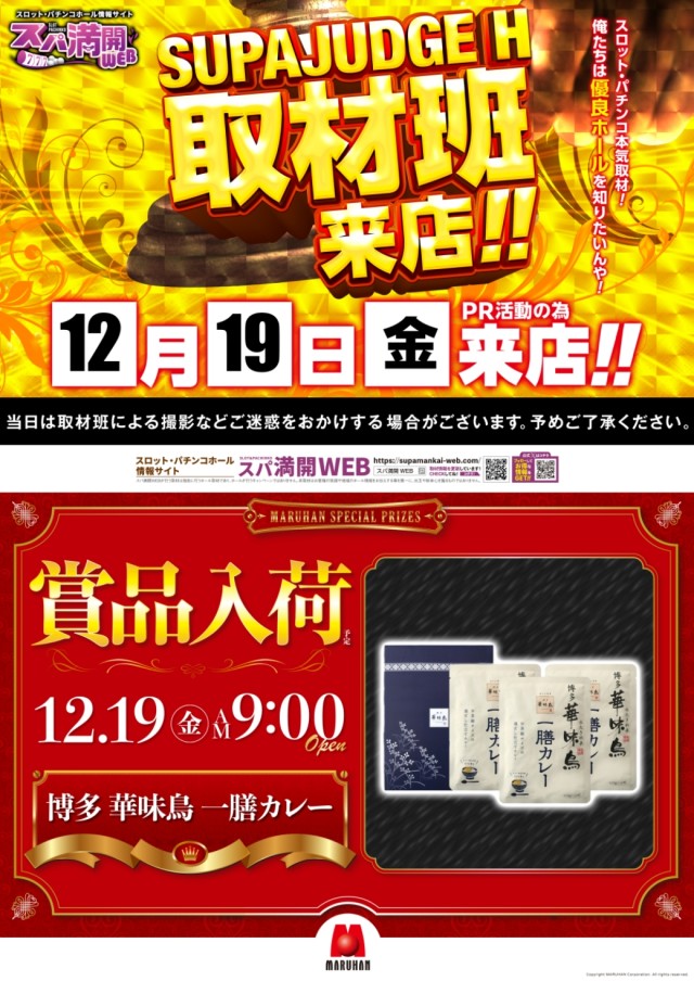 12月19日(金)【スパジャッジH取材班来店】あさ9時開店!