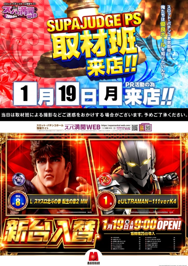 1月19日(月)【新台入替】あさ9時開店!!