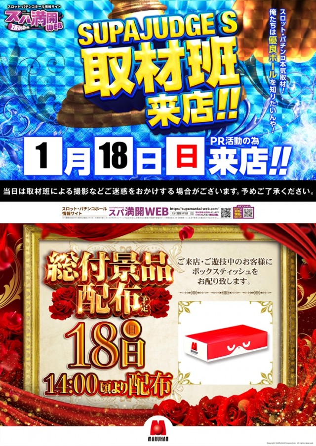 1月18日(日)【スパジャッジS&総付景品配布】朝9時開店