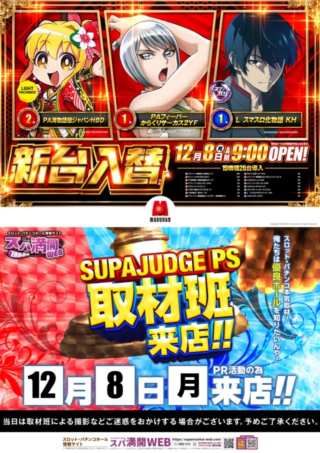 12月12日(木)マルハン全店合同営業 朝9時開店!!