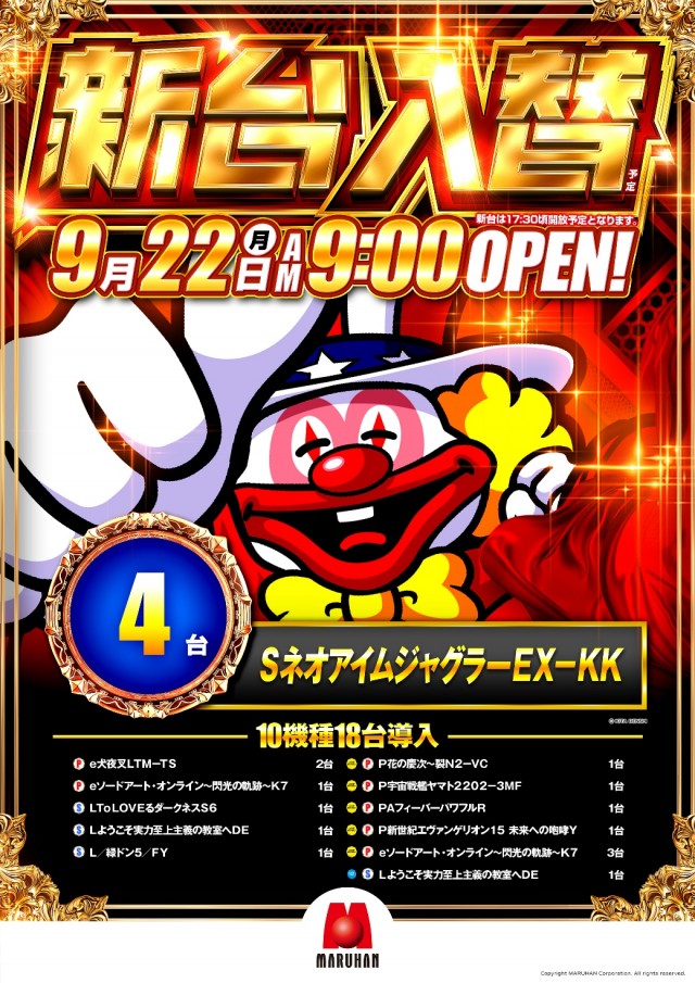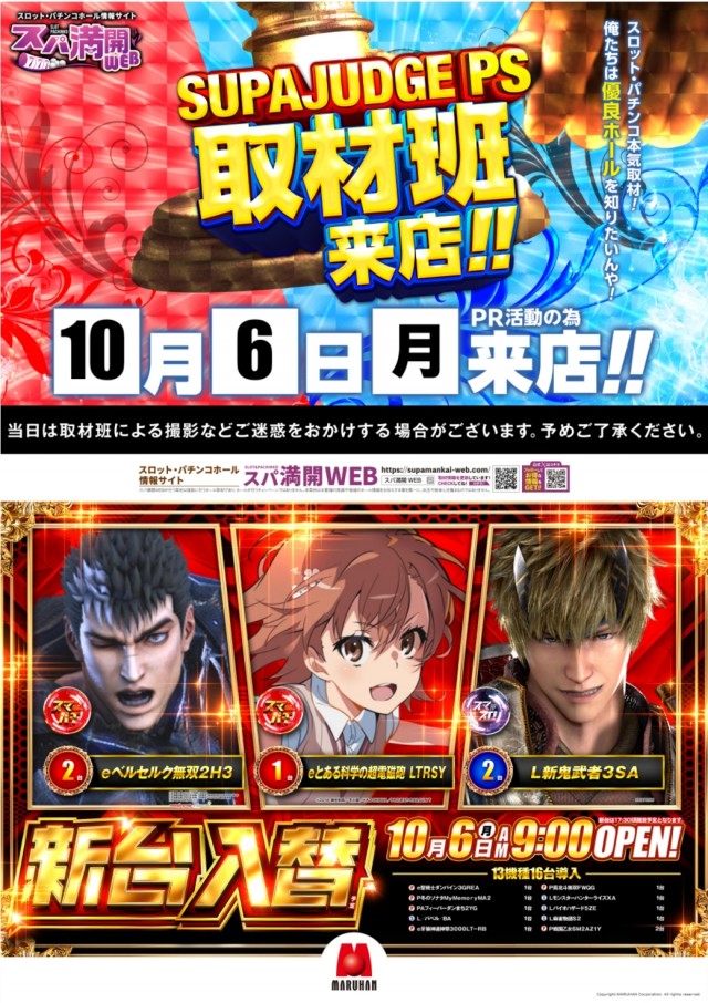 10月6日(月)【新台入替&取材班来店】朝9時開店!!