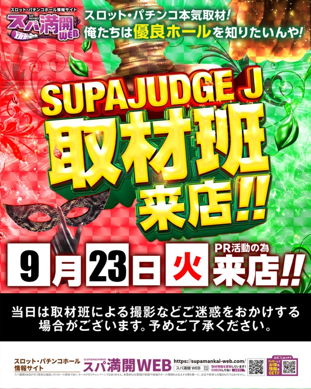 9月23日(火)【スパジャッジJ取材班来店】あさ9時開店!!