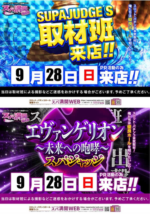 9月28日(日) 【スパジャッジ取材来店】朝9時開店!!