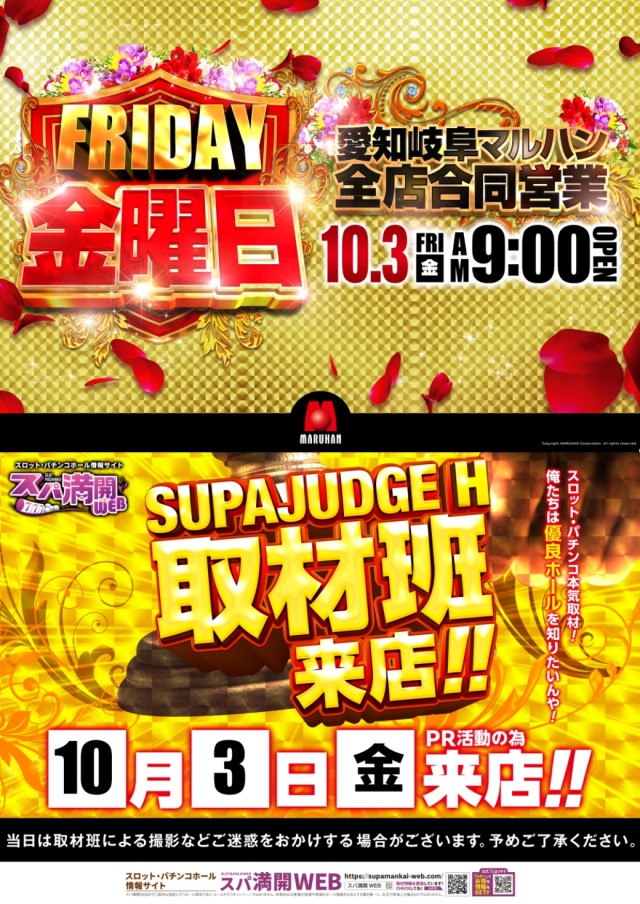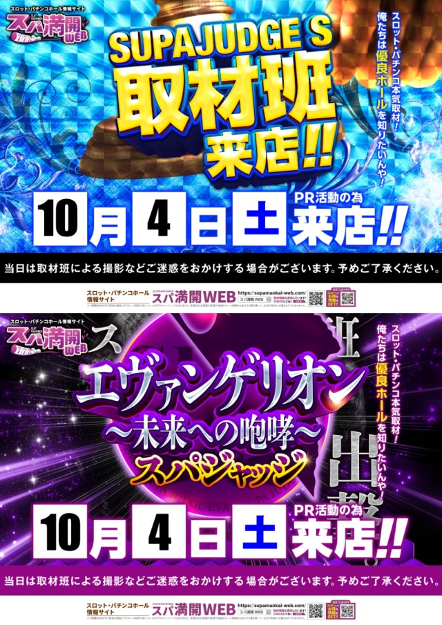 10月3日(金)【スパジャッジH取材班来店】あさ9時開店!!