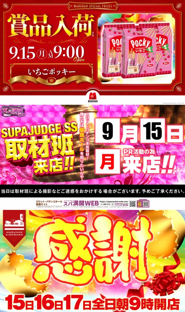 9月15日(月)スパジャッジSS来店&賞品入荷!あさ9時開店