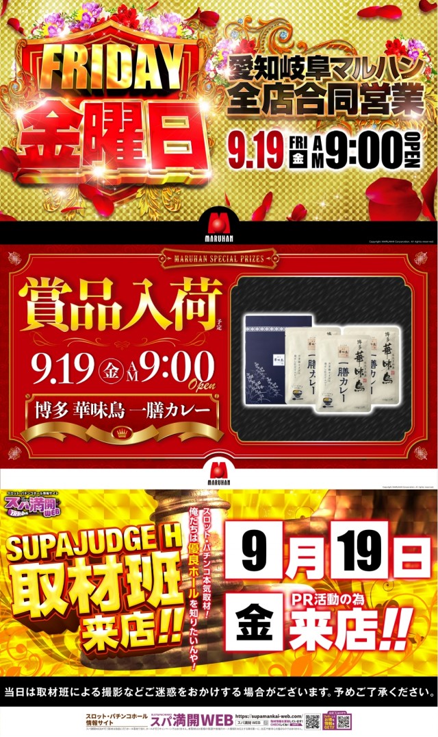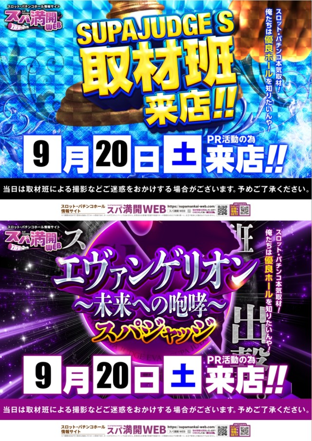 9月19日(金)【スパジャッジH取材班来店】あさ9時開店!!