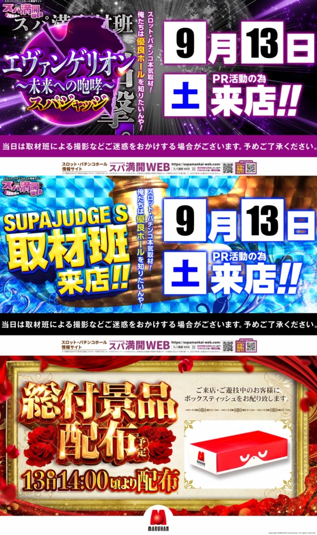 9月13日(土)【総付配布&取材班来店予定】あさ9時開店!!