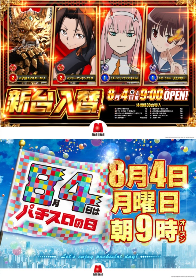 8月4日(月)【新台入替&パチスロの日】あさ9時開店!!