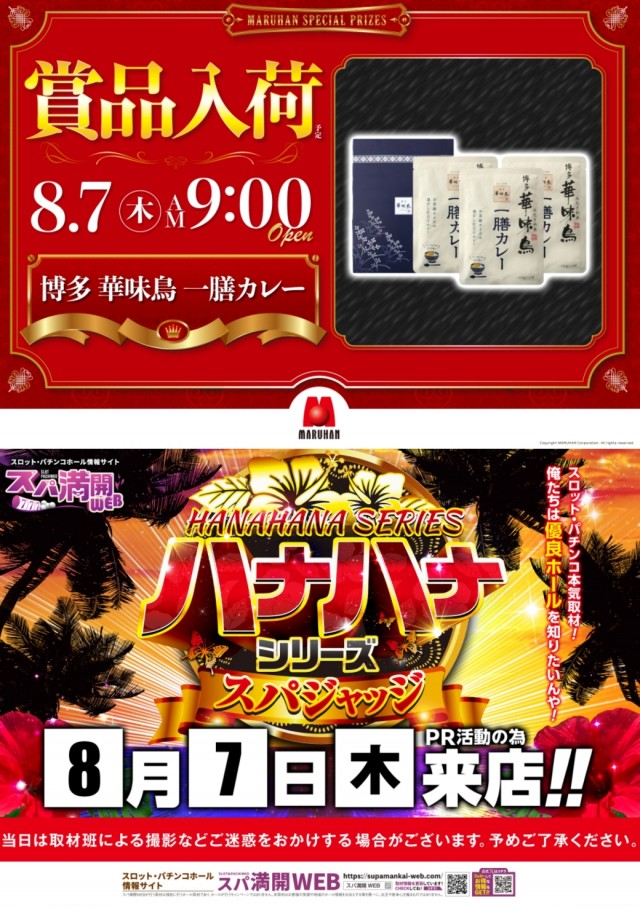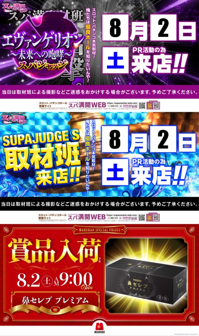 8月2日(土)【スパジャッジ取材班&賞品入荷】朝9時開店!!
