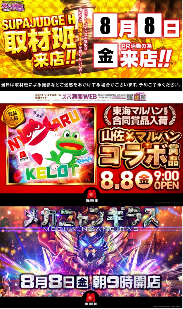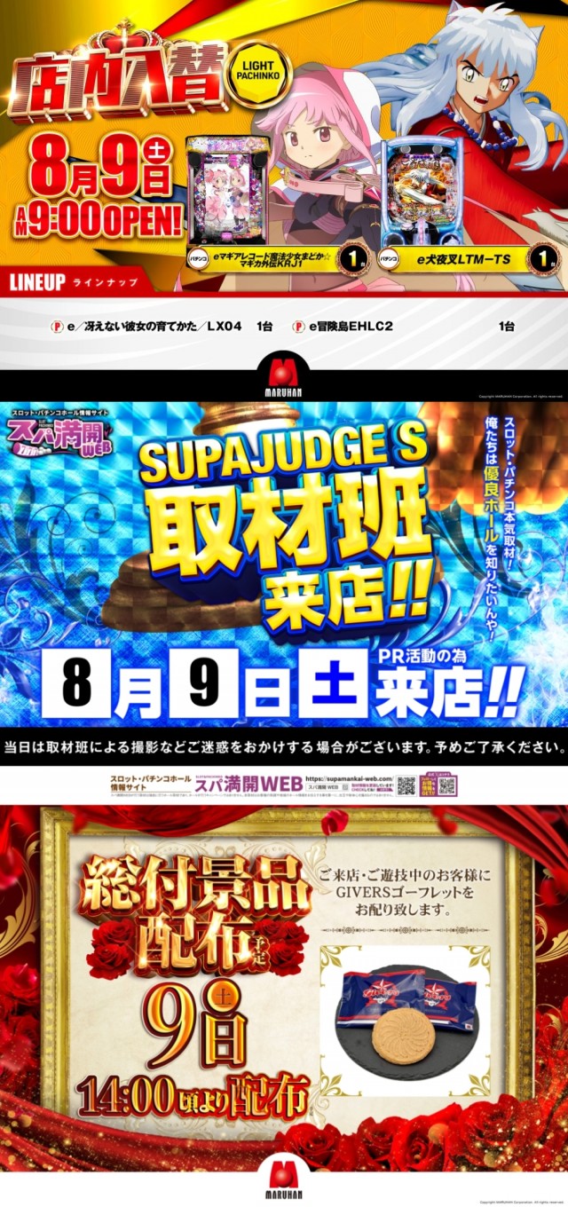 8月9日(土)【スパジャッジS&総付&店内入替】朝9時開店!