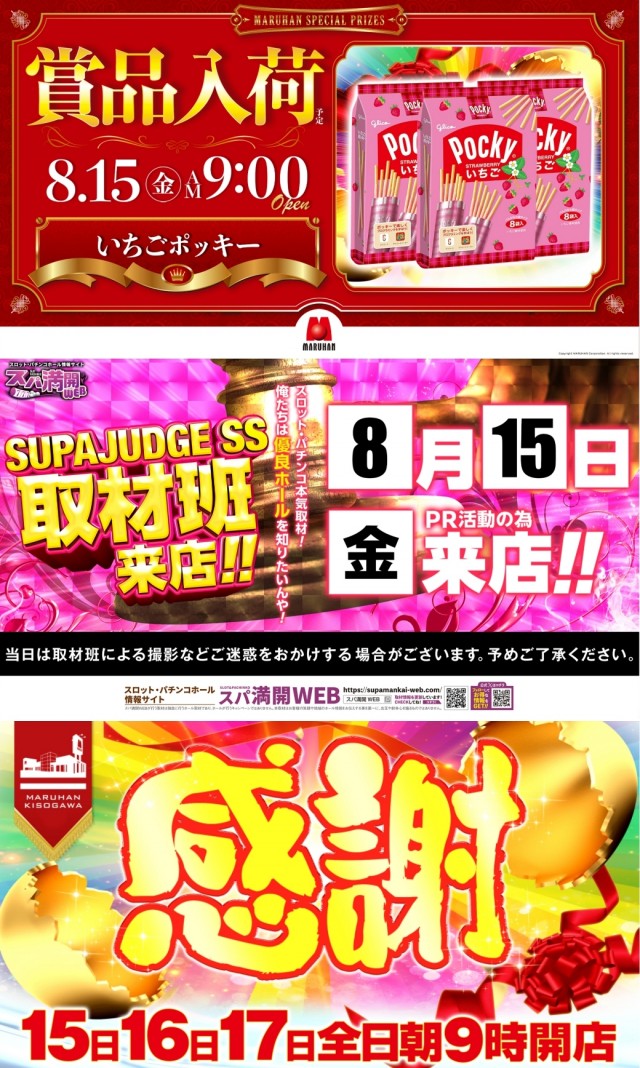 8月15日(金)【スパジャッジSS来店】あさ9時開店!!