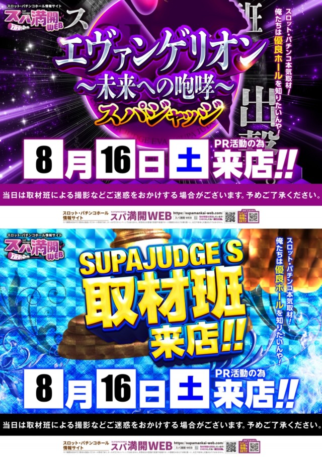 8月16日(土)【スパジャッジ取材班来店】あさ9時開店!!