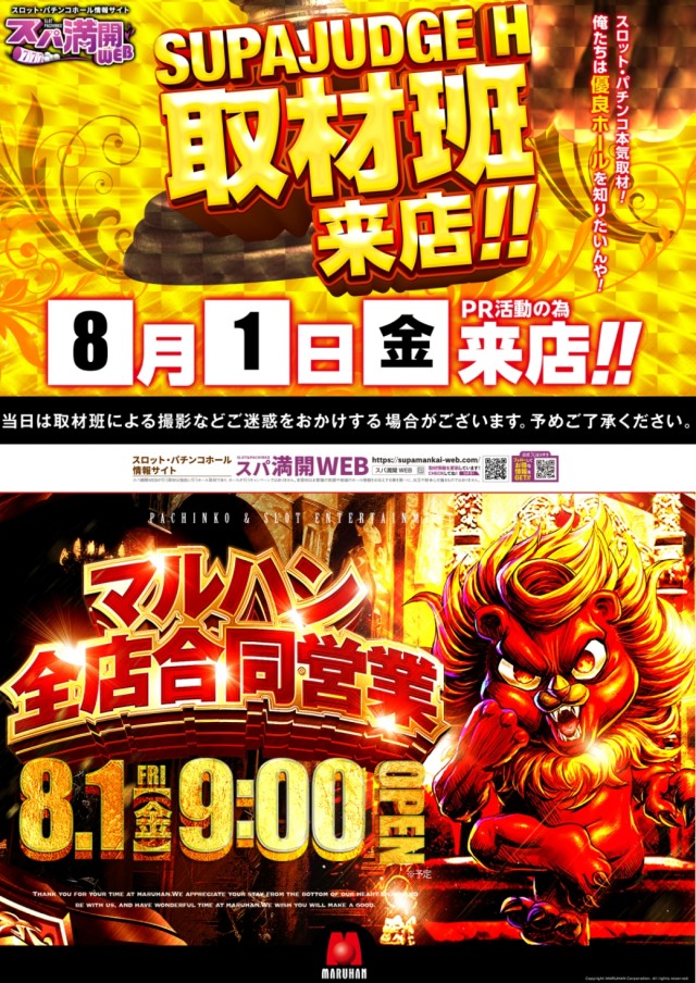 8月1日(金)あさ9時開店【スパジャッジH取材班来店】