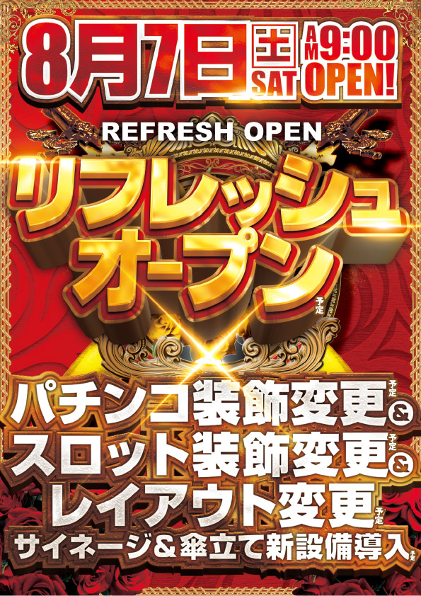 8月7日・8日・9日朝9時OPEN! 抽選時間は8:30♪