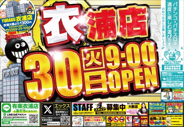 ★有楽衣浦店★新台入替初日★朝9時開店!!