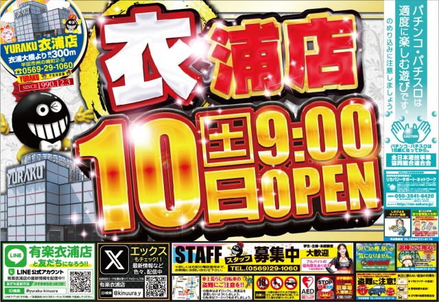10日★有楽衣浦店★新台初日★朝9時開店!!