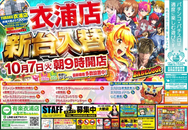 不定休 : 新台入替前日はお休みさせていただきます。 |
