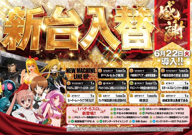6月22日 新台入替♪ 朝9時開店!!抽選入場8:30開始