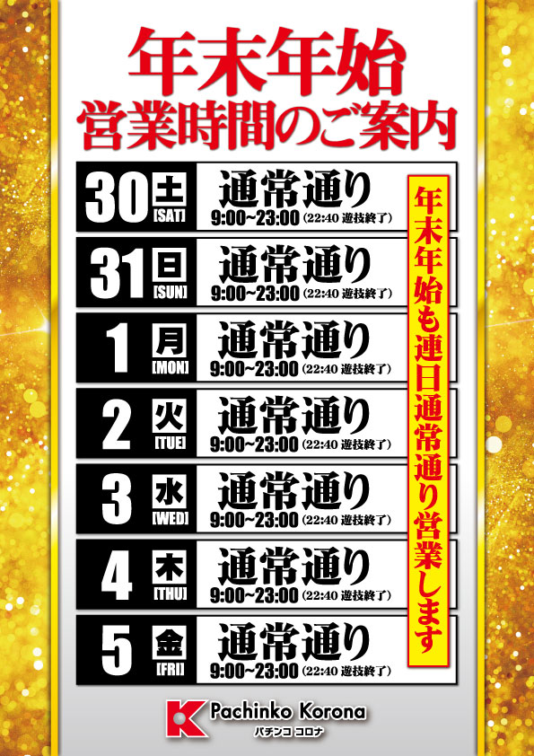 12月25日(月) 半田コロナ愛知全店一斉朝9時オープン❗