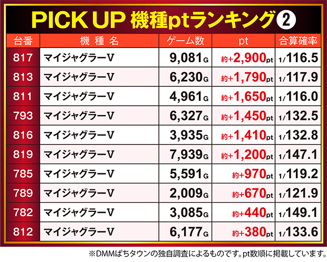「マイジャグラーⅤ」では、817番台が約+3,000ptクラス!