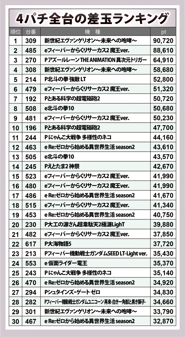 ここからは4パチの上位30台に密着。