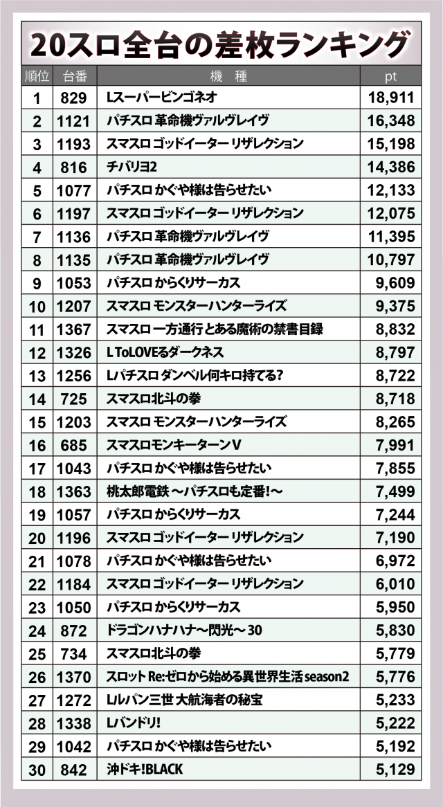ラストはスマパチの30台ランキングで締め括ろう。