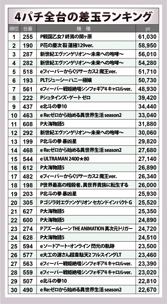 ここからは4パチのベスト30台に焦点を当てる。