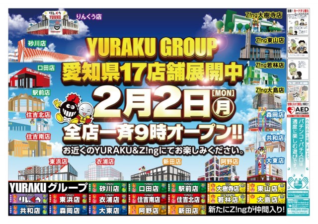 ★2月2日(月) 有楽グループ全店★あさ9時開店★