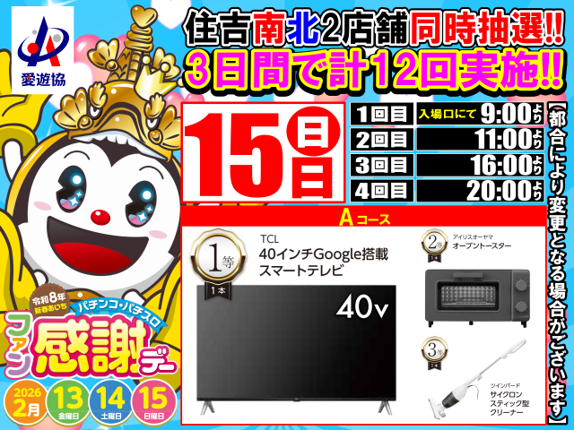 ★15日(日) ★ファン感謝デー★あさ9時開店★