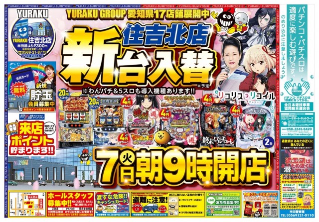 ★7日(土) リニューアルオープン★新台入替★あさ9時開店★