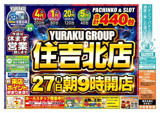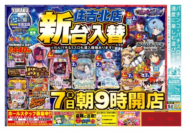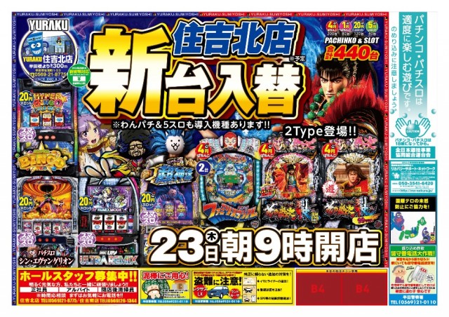不定休 : 新台入替前日はお休みさせていただきます。 |