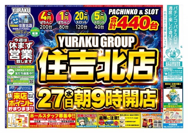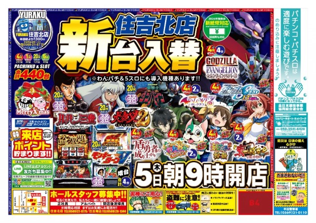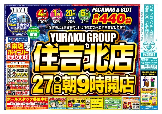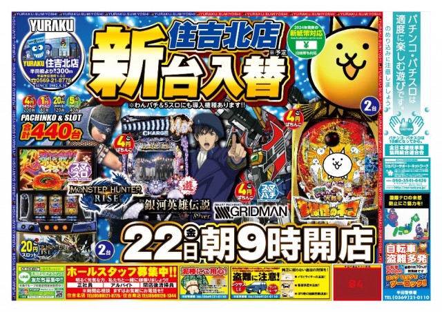不定休 : 新台入替前日はお休みさせていただきます。 |