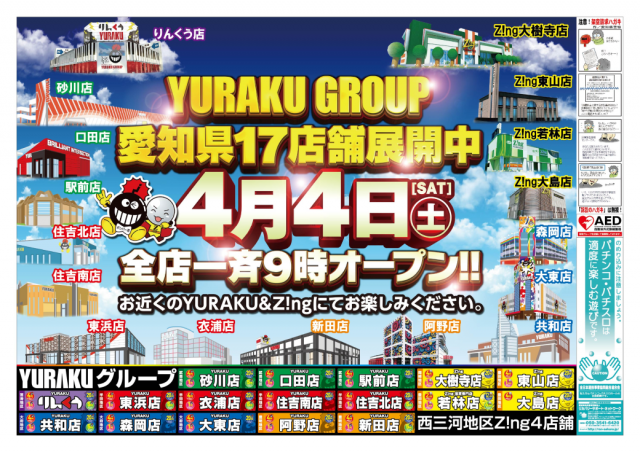 ★4月4日(土) 有楽グループ全店一斉★あさ9時開店★