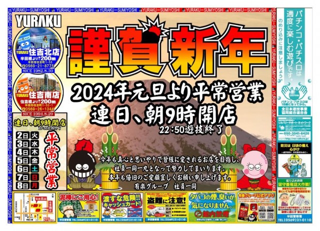 ★2024年元旦:住吉南店あさ9時開店★