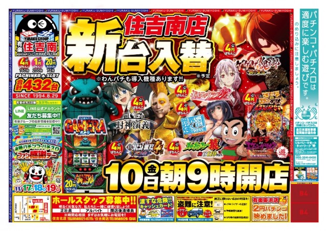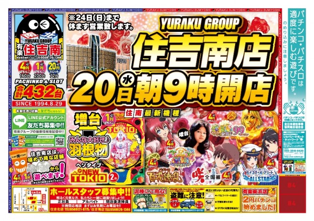 不定休 : 新台入替前日はお休みさせていただきます。 |