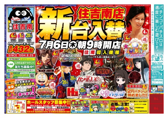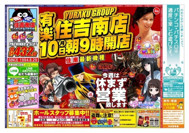 不定休 : 新台入替前日はお休みさせていただきます。 |