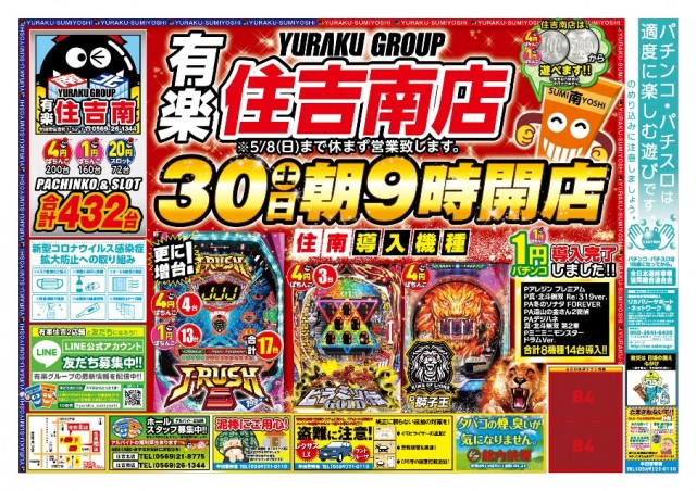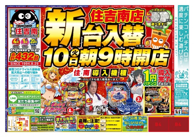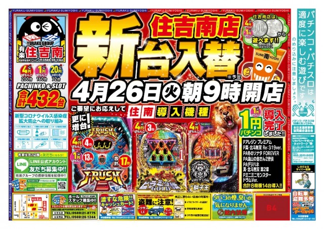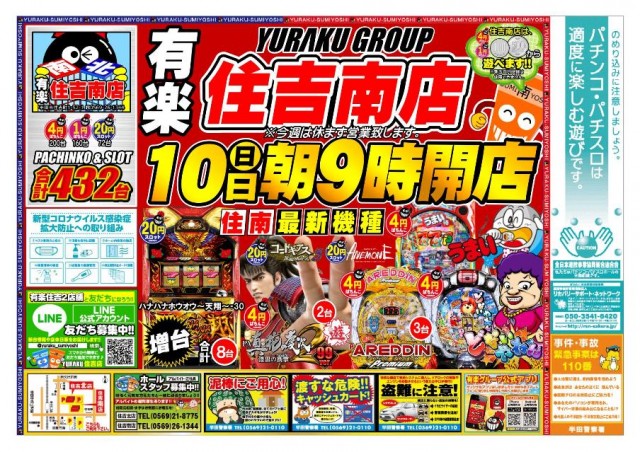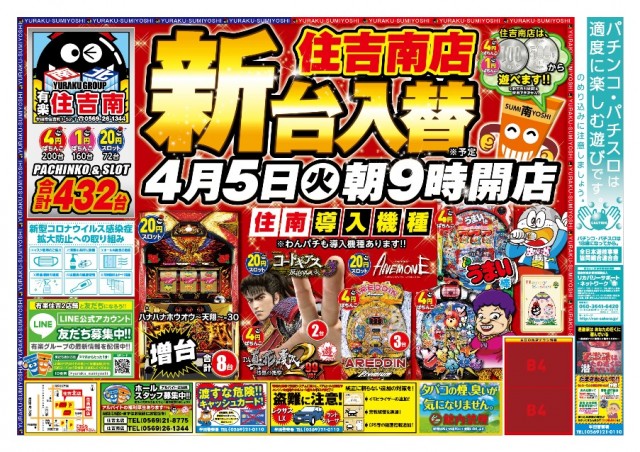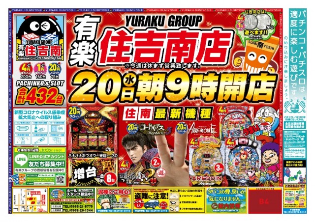 不定休 : 新台入替前日はお休みさせていただきます。 |