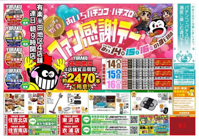 不定休 : 新台入替前日はお休みさせていただきます。 |