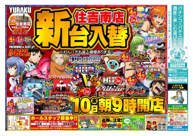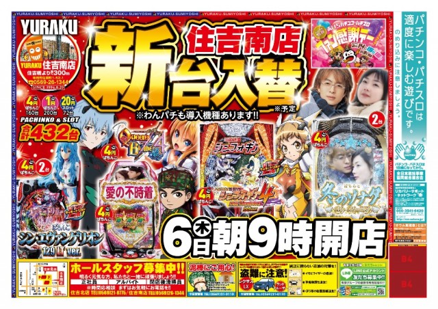 不定休 : 新台入替前日はお休みさせていただきます。 |