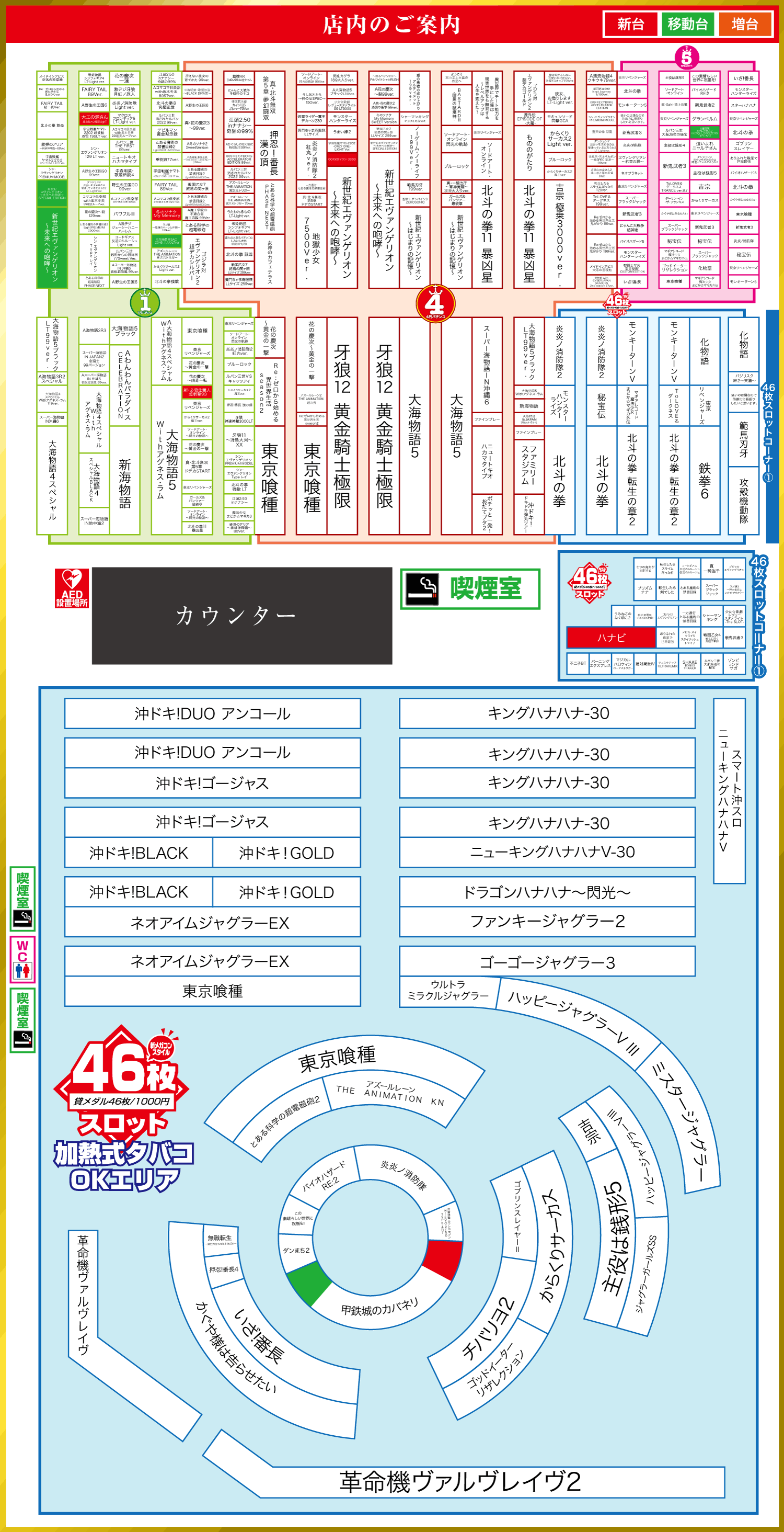 ・全館LED・分煙ボード全940台設置・ワゴンサービス・スロットコーナー加熱式タバコOK